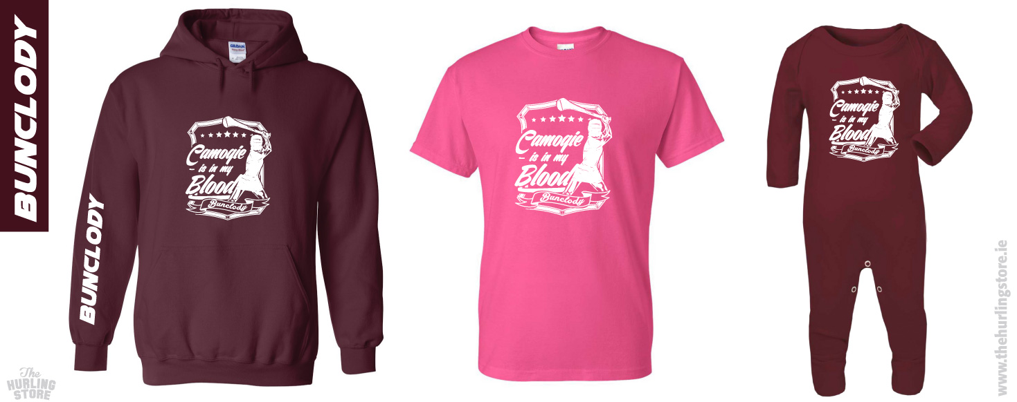 Bunclody Camogie  Tshirt Hoodie Babygrow Please check our Size Charts to make sure your ordering the correct size. This design is also available in Pink