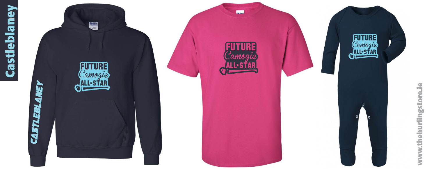 Castleblaney Camogie  Tshirt Hoodie Babygrow Please check our Size Charts to make sure your ordering the correct size. This design is also available in Pink